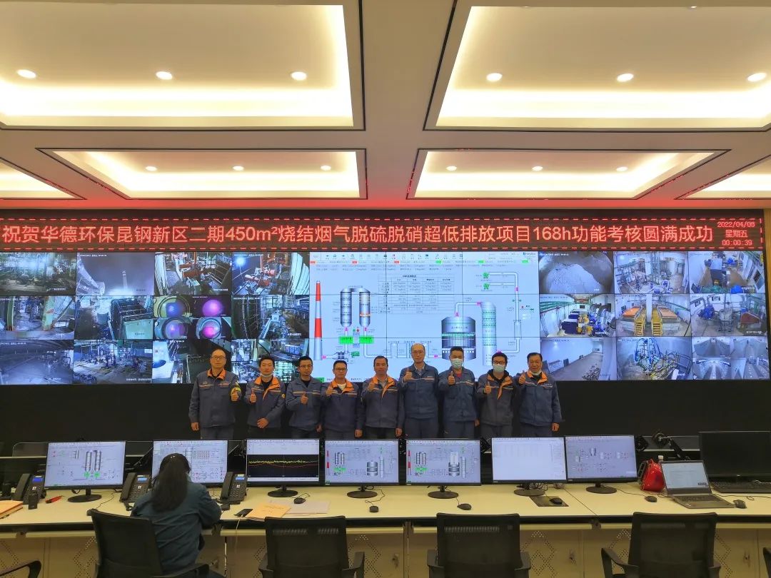 2022年4月7日24:00,华德环保承建的昆钢新区二期450㎡烧结烟气脱硫脱硝超低排放项目168h功能考核圆满成功,现场一片欢腾!